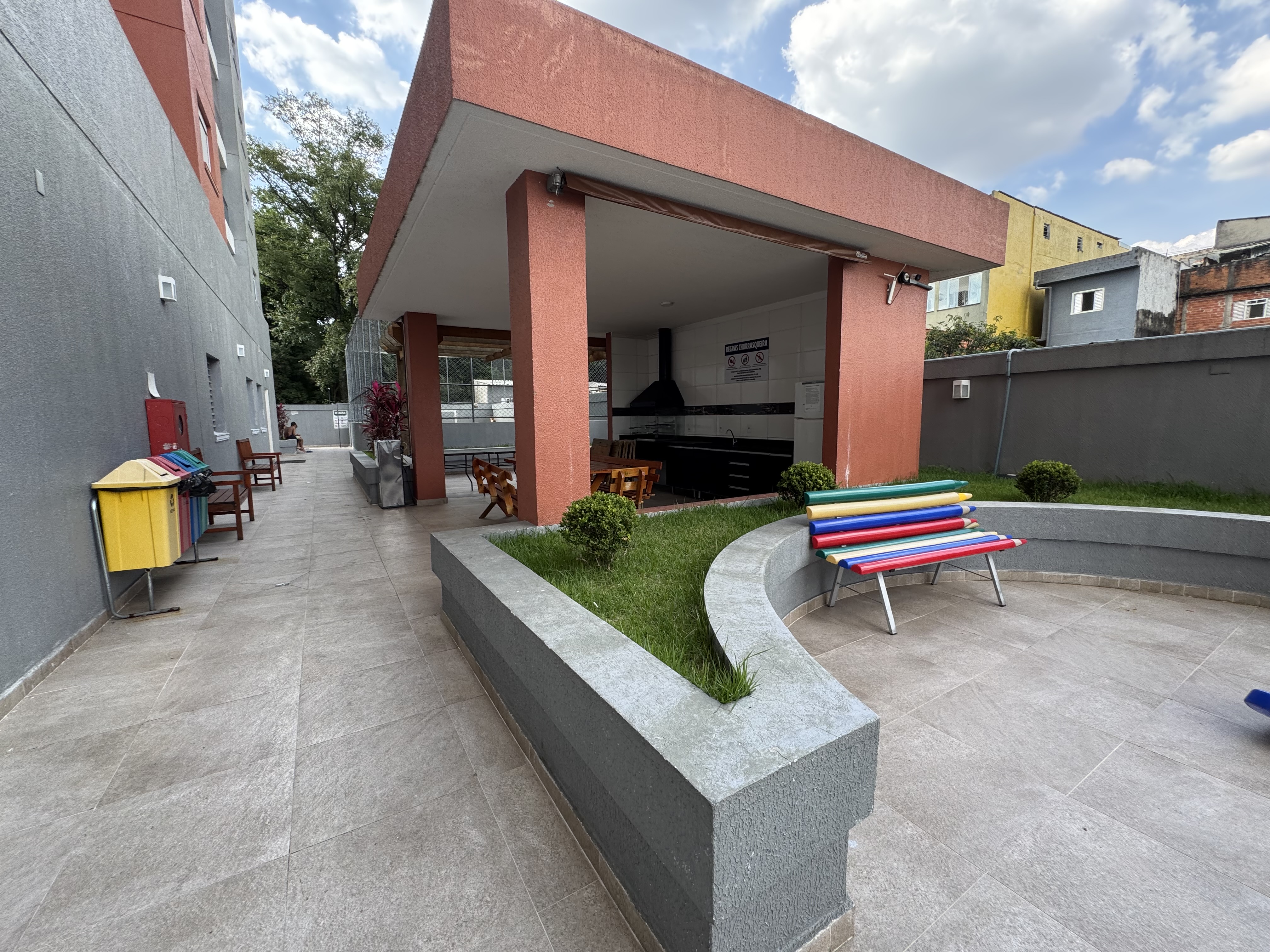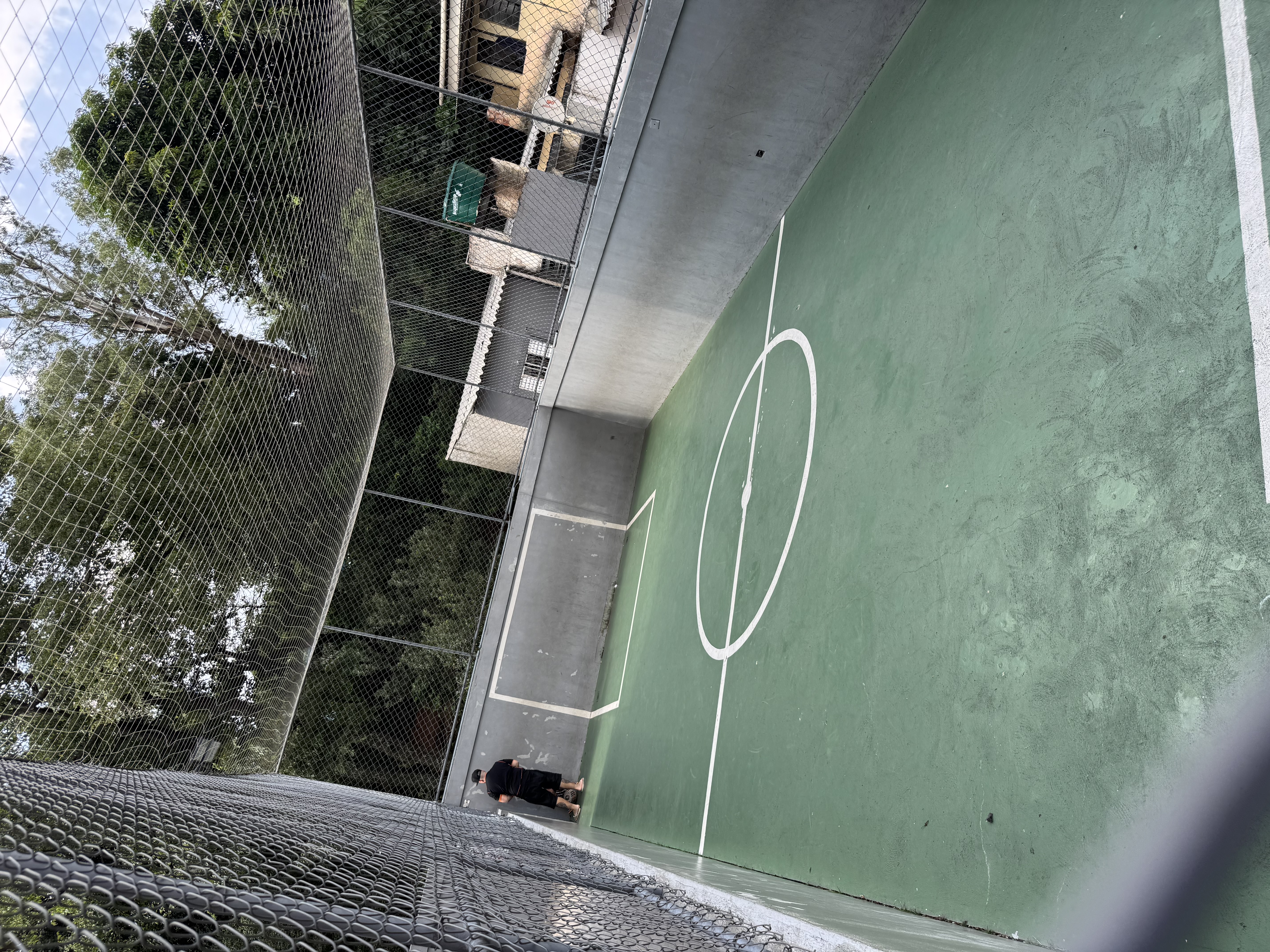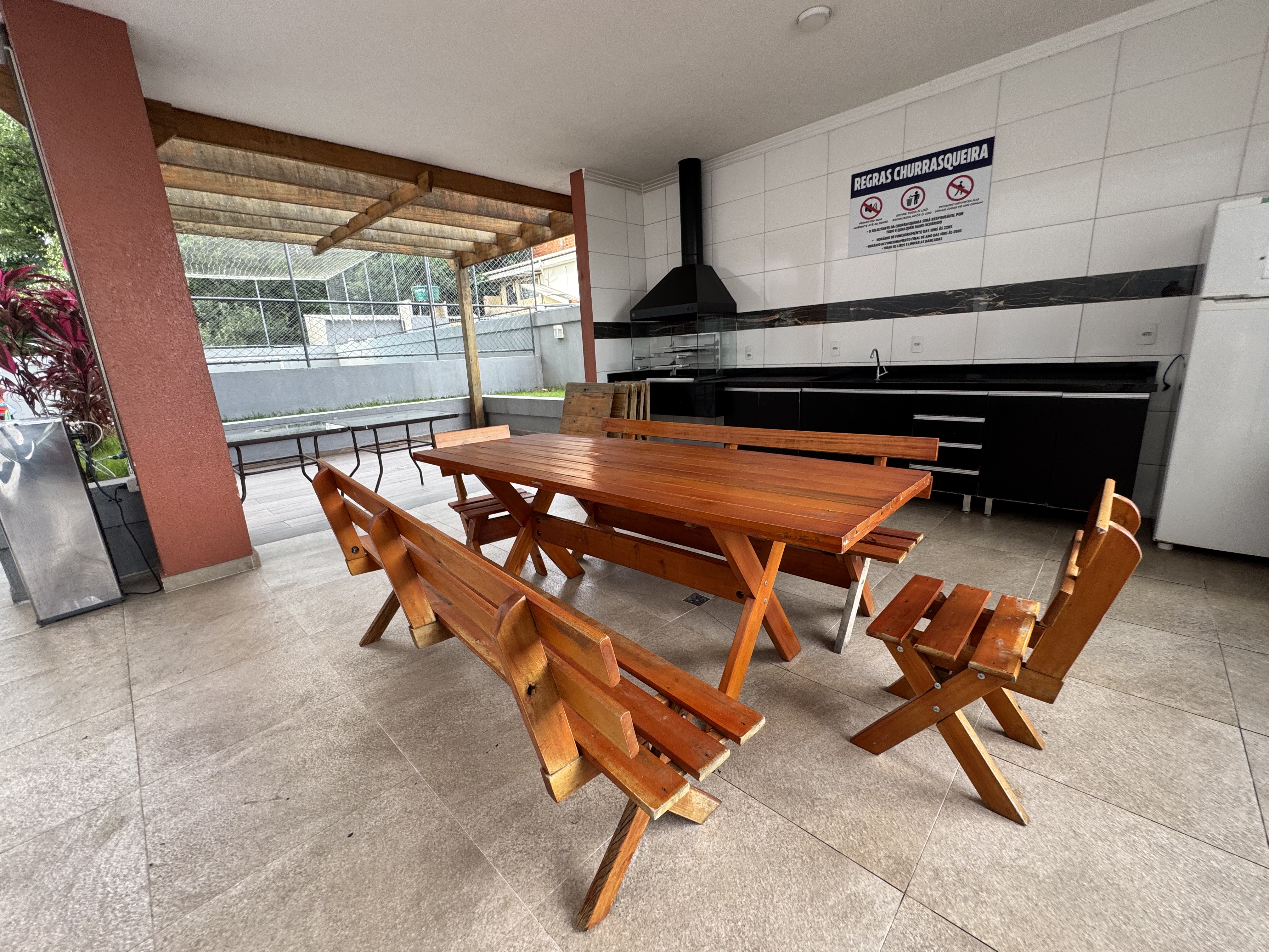 Vista para quadra e churrasqueira.
