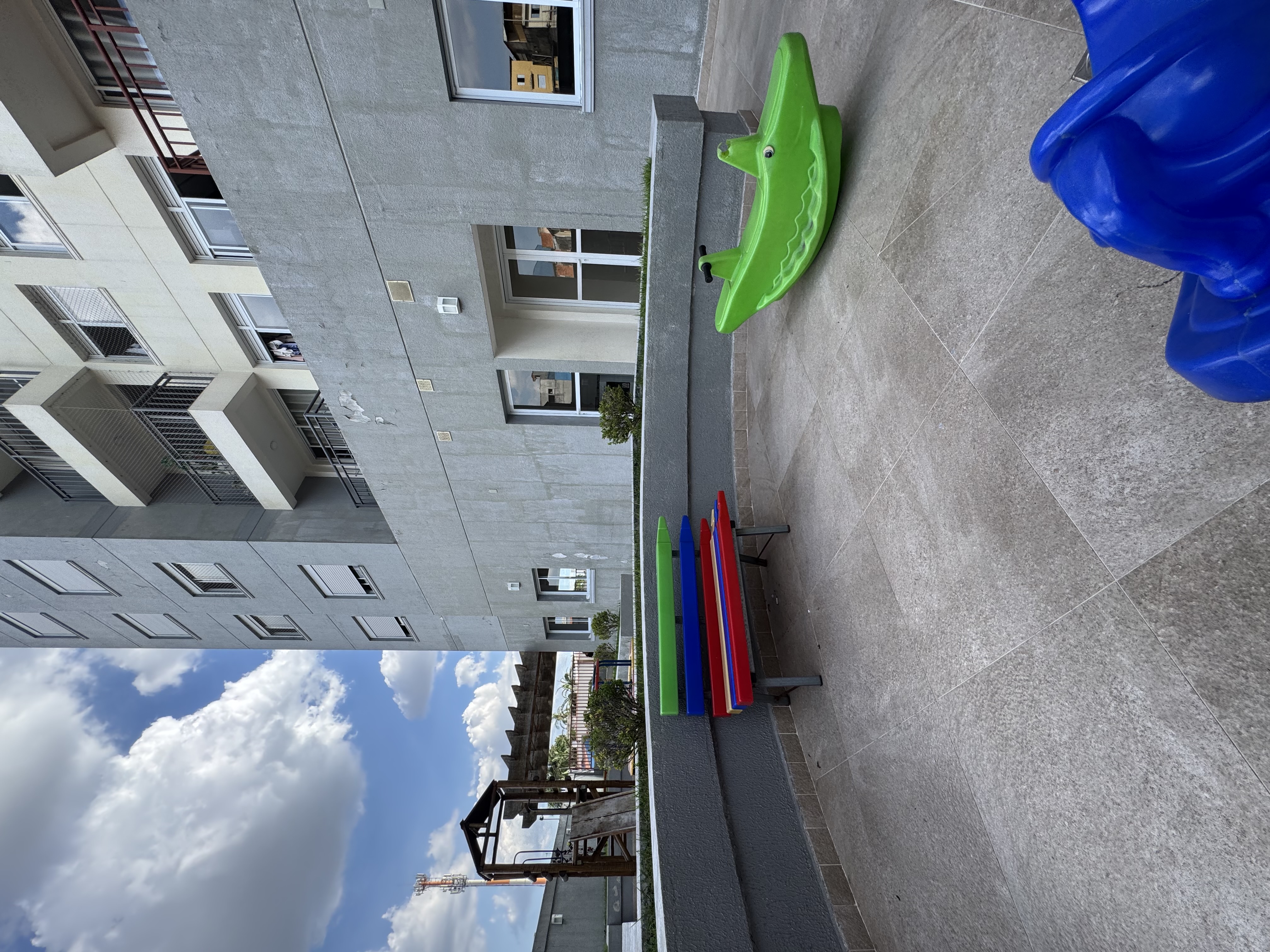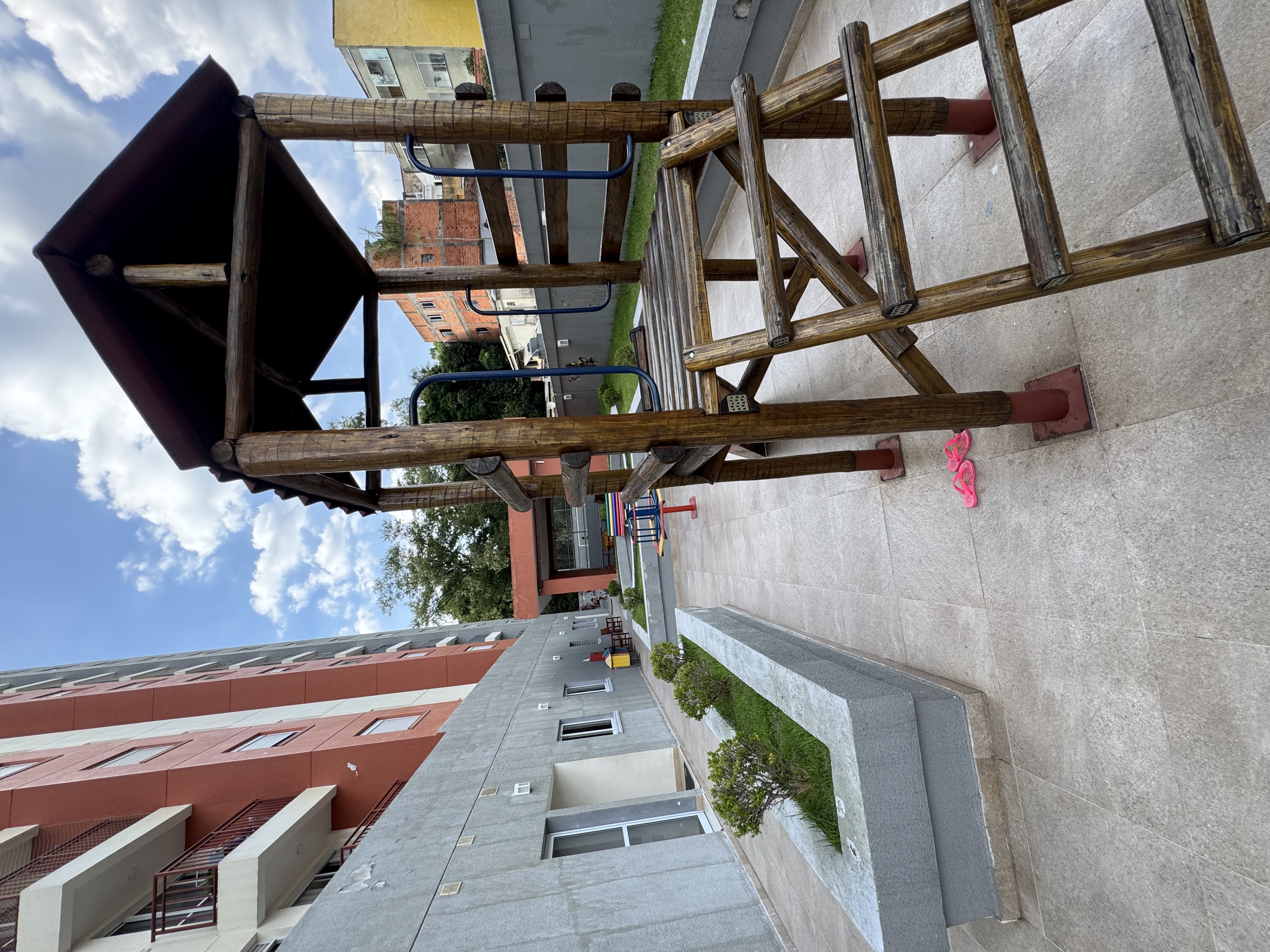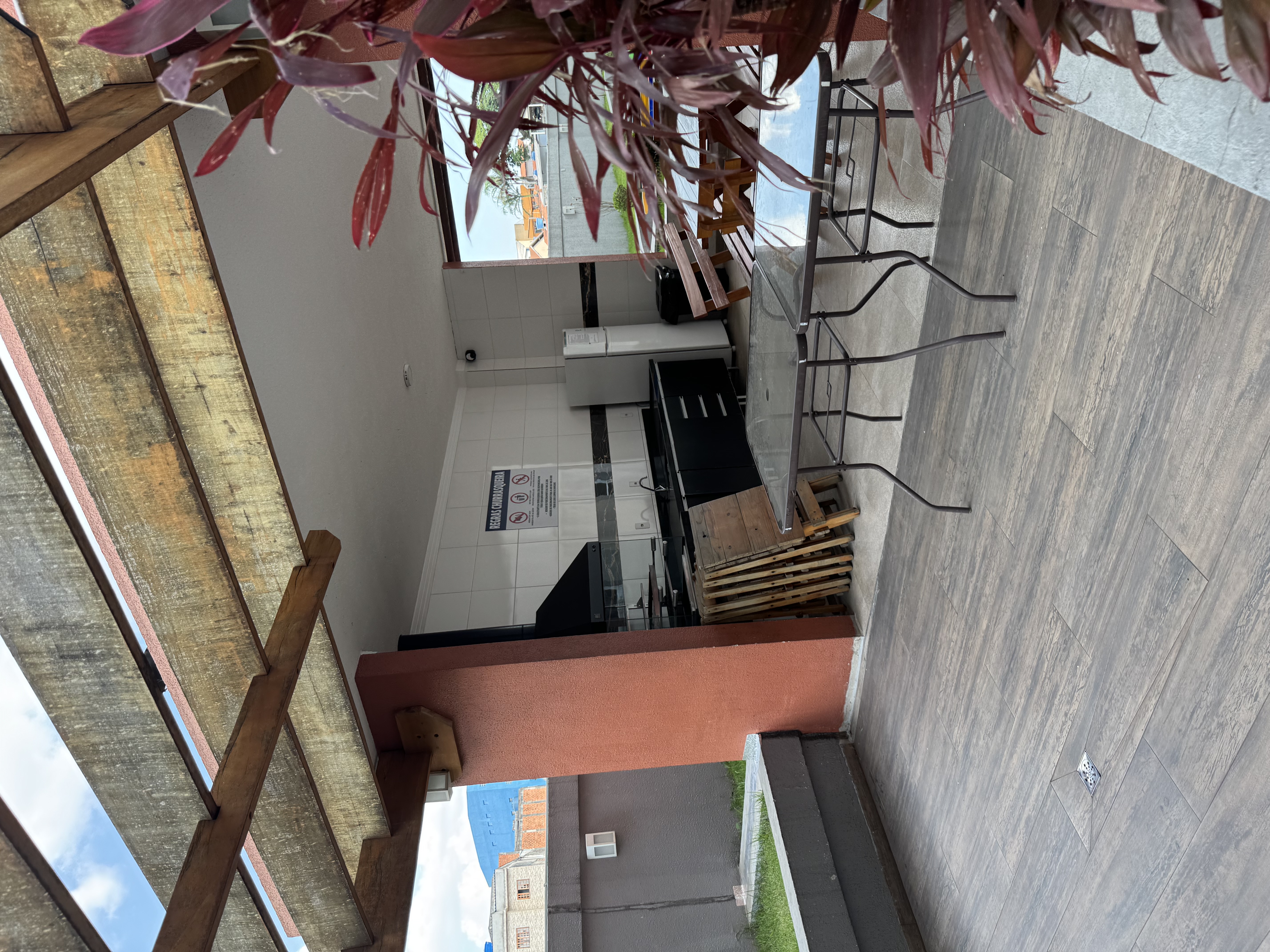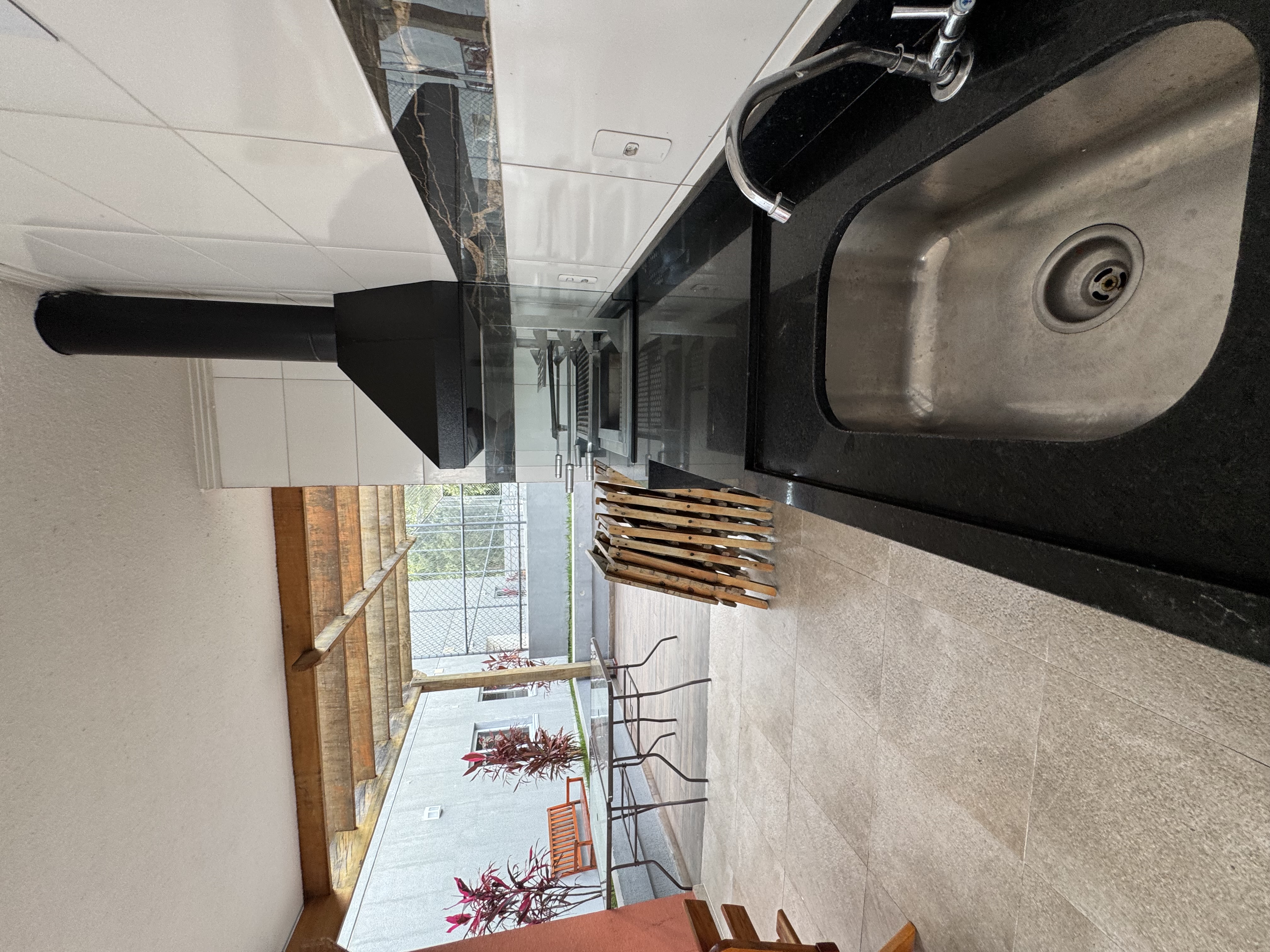 Vista para quadra e churrasqueira.
